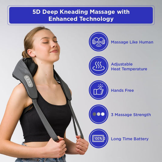 Neck Massager with Heat - Mini Portable Neck Massager - Neck, Back, Shoulder, Leg, Kneading Massager - Cordless Deep Tissue - Deep Massage at Home, Office & Car, Muscle Relaxation